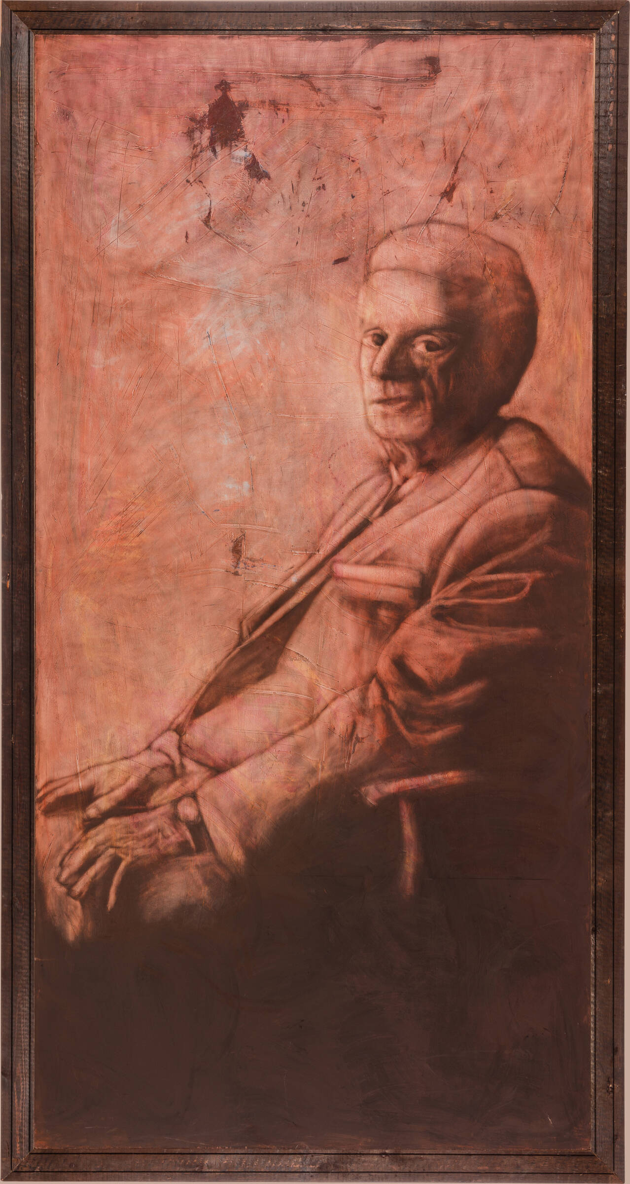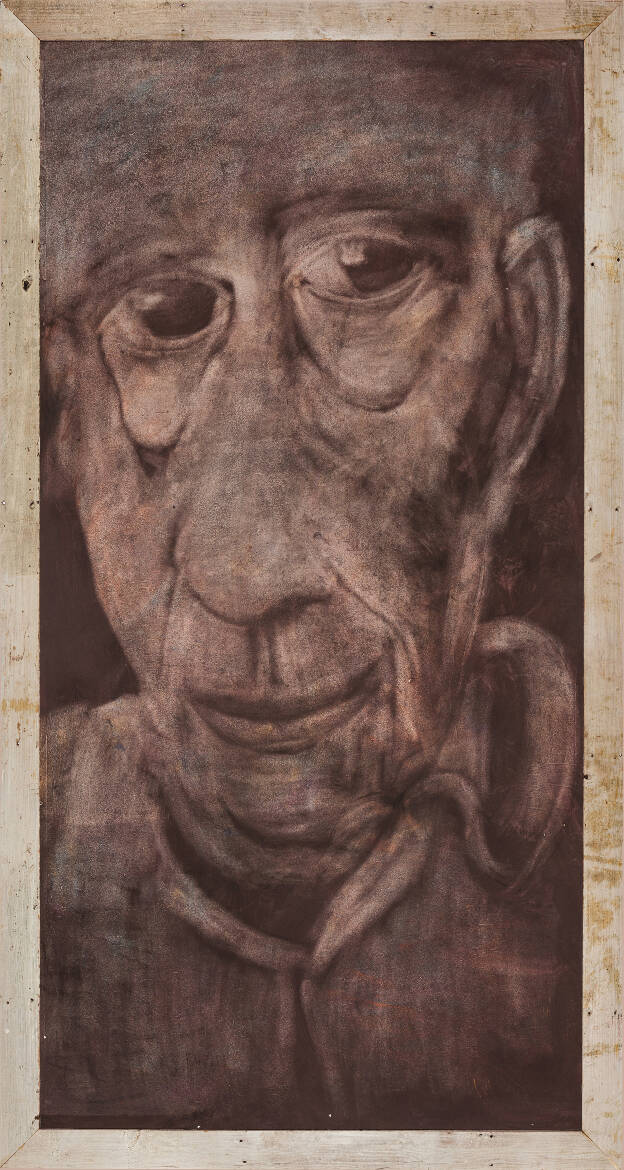 Eine Serie Kreide-Porträts auf großen Holztafeln mit markanten Gesichtern von Menschen jüdischer Herkunft.